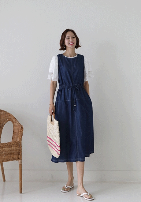허리스트링 데님원피스