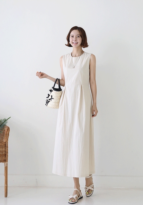 씨유주름 나시원피스