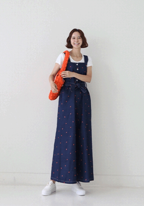 하트물방울 데님점프수트
