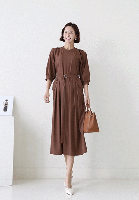 숄더와허리 주름원피스
