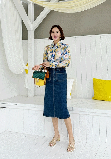 멀티플라워 간절기블라우스