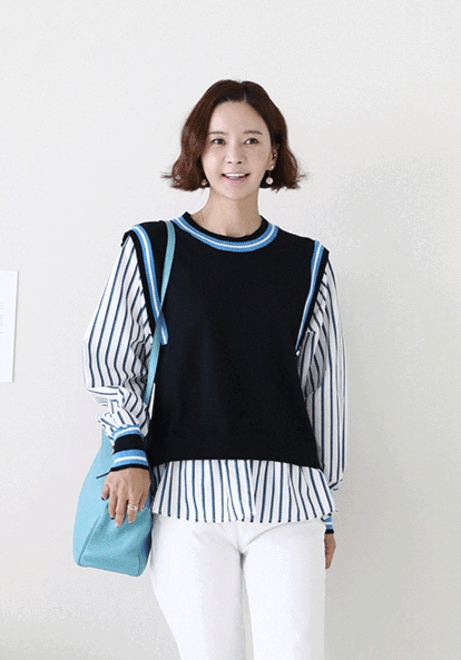 스트라이프 셔츠배색니트