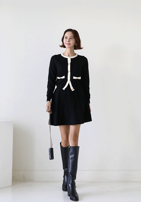 레어가디건 스커트세트