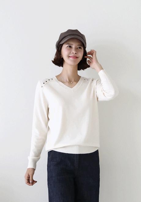 브이카라넥 긴팔니트