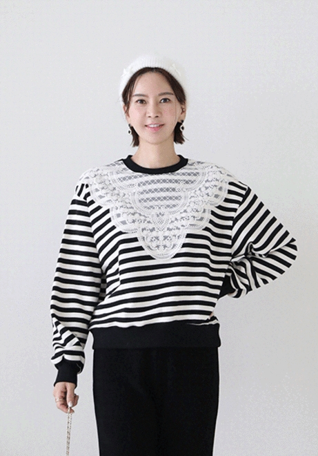 레이스배색 단맨투맨