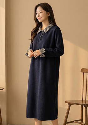 [빅사이즈] 체크카라 기모원피스 (6234)
