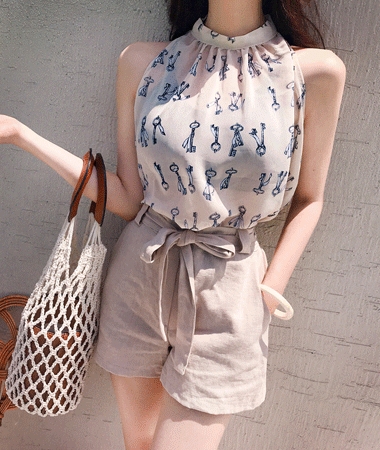 린넨리본반바지