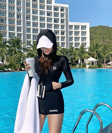 (USRONNIE)여성 래쉬가드후드집업-히든테라