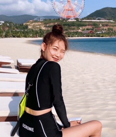 (USRONNIE)여성 래쉬가드크롭탑-래핑파이