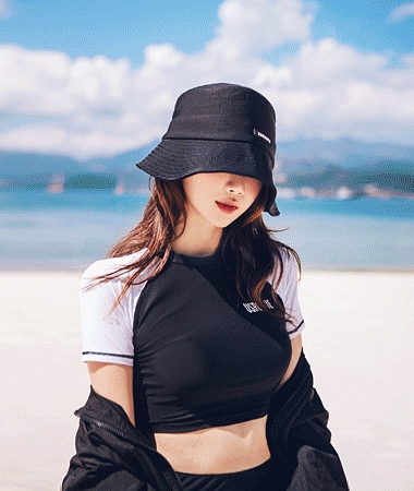 (USRONNIE)여성 래쉬가드크롭탑-니콜라