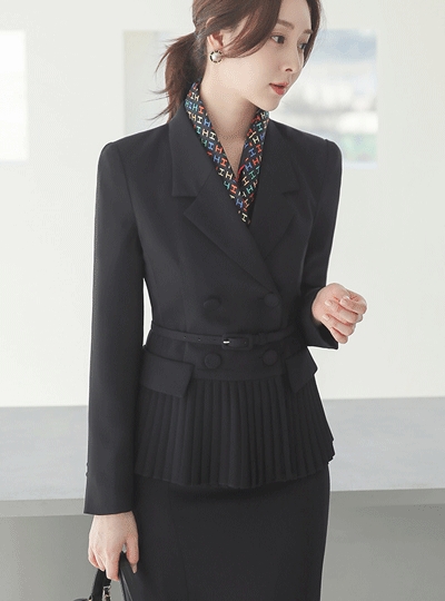럭스 더블버튼 테일러드 플리츠 페플럼 자켓