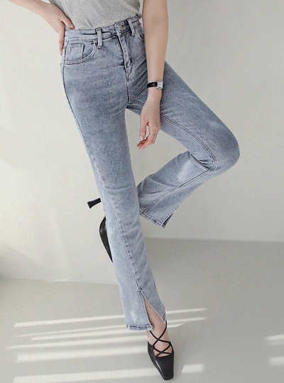 유니크 스톤 워싱 슬릿 부츠컷 데님