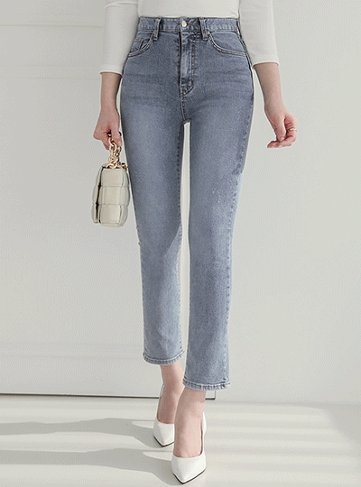 하이라이트 워싱 슬림 일자 데님팬츠