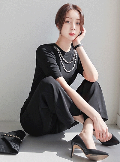 볼드 진주&체인 네크리스 티셔츠