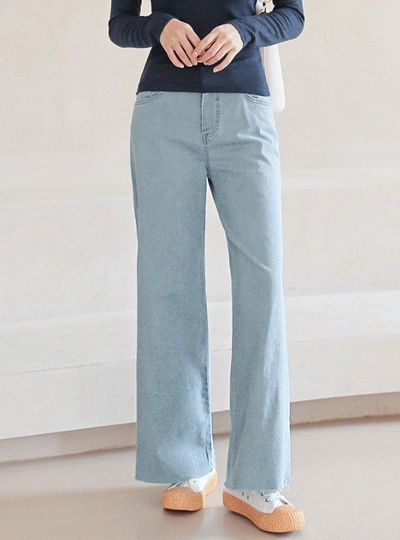 쿨링 라이트 백밴딩 와이드 데님 팬츠