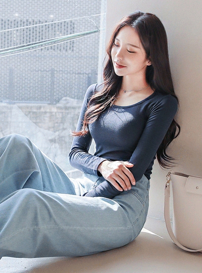 소프트 텐셀 골지 슬림 스퀘어넥 티셔츠