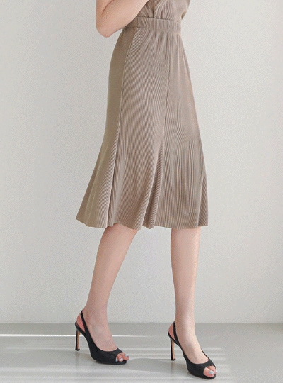 링클 플리츠 더블 슬릿 밴딩 스커트