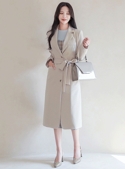 모던 싱글 벨티드 테일러드 스판 롱자켓