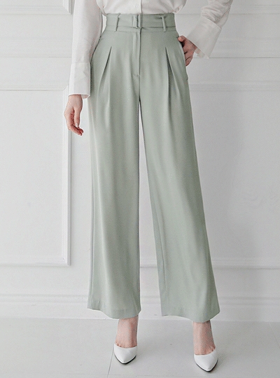 더블 핀턱 스퀘어 벨트 와이드 슬랙스