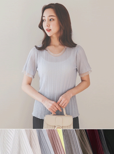 프릴라인 링클 플리츠 반소매 블라우스탑