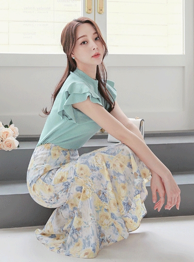 워터리 마블 플라워 백밴딩 머메이드 스커트