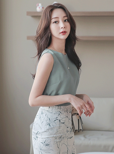 미니멀 베이직 슬리브리스 라운드 블라우스