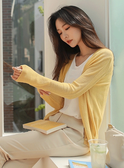 데일리 브이넥 린넨 시스루 가디건
