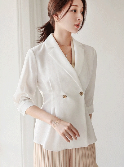 프레쉬 더블버튼 백밴딩 핀턱 자켓