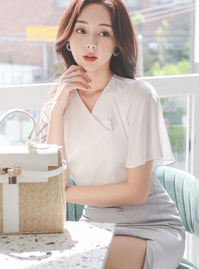 핀턱 카울넥 날개소매 블라우스