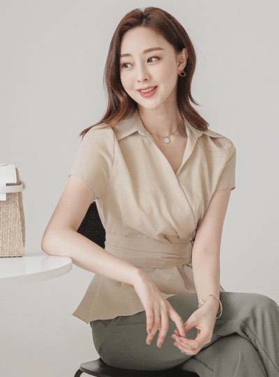 쉬폰 튤립소매 스퀘어넥 링클 블라우스