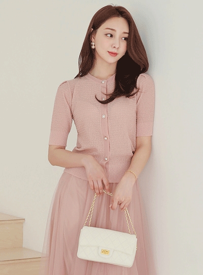 골드 펄 진주버튼 와플 가디건