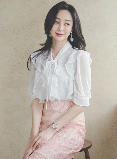캉캉 프릴 쉬폰 타이 블라우스(반소매)