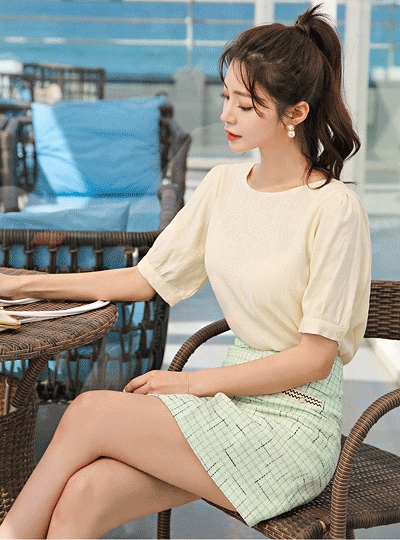 백리본 퍼프소매 쿨링 블라우스