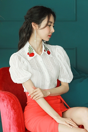 자수카라 블라우스