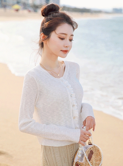 미니프릴 보카시 시스루 골지 가디건