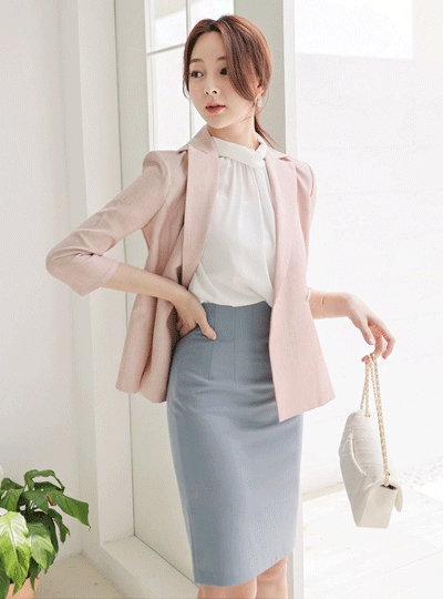 메탈버튼 소매배색 플리츠 페플럼 자켓