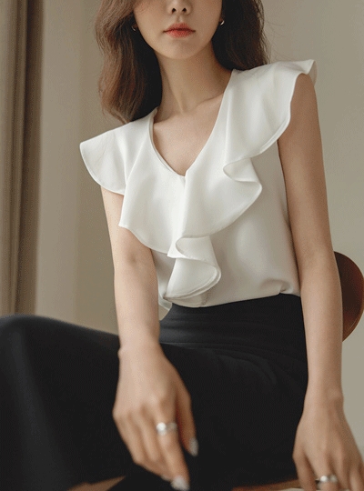 그레이스 러플 슬리브리스 블라우스