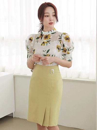린넨 코튼 블렌드 백밴딩 슬릿 스커트