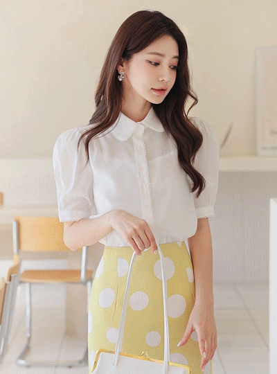 스위트 모달 자수 트리밍 카라 블라우스