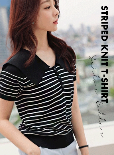 세일러 카라 스트라이프 니트티