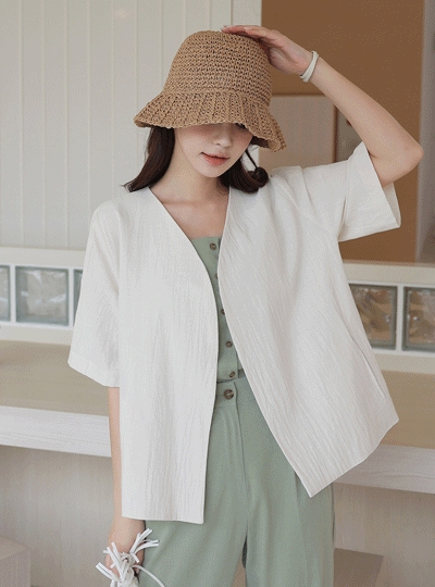 노멀 코튼 베이직 노카라 자켓