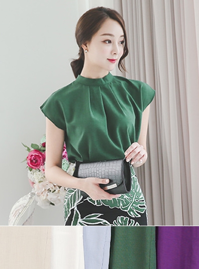 플랫 튤립카라 배색 셔링 블라우스(민소매)