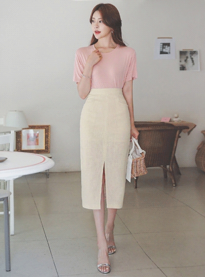 슬릿 포켓 H라인 린넨 스커트
