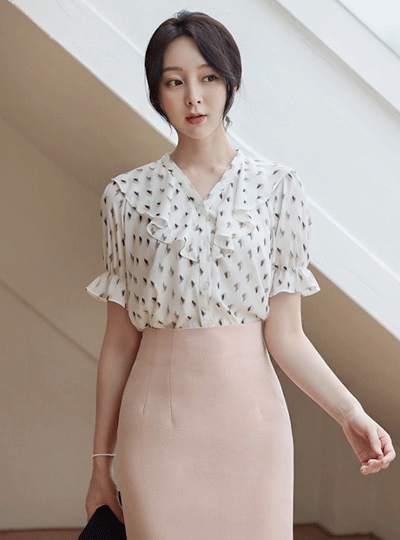 팔레트 페인팅 러플라인 브이넥 블라우스