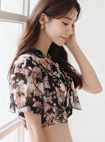 린넨 고방 체크 플랫카라 퍼프 블라우스