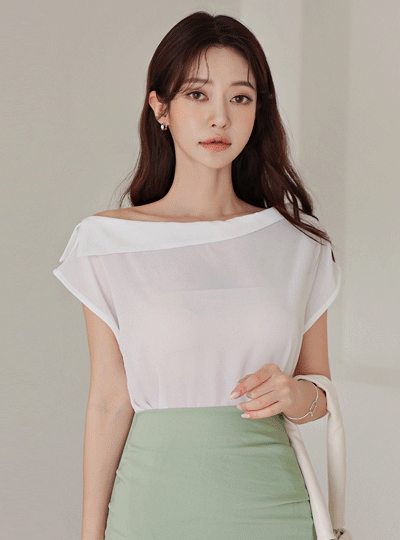 보트넥 언발 카라 블라우스
