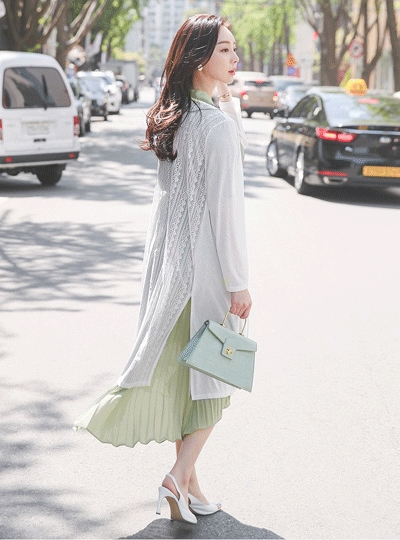 백라인 자수 레이스 딥슬릿 롱 가디건