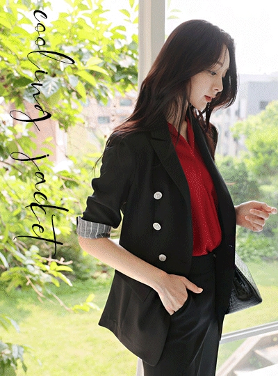 시스루 슬리브 롤업 배색 쿨링 자켓