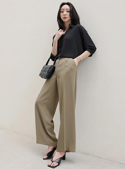 심플 핀턱라인 와이드핏 롱 슬랙스