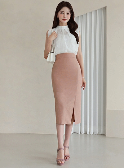 린넨 터치 하이웨스트 슬릿 스판 스커트